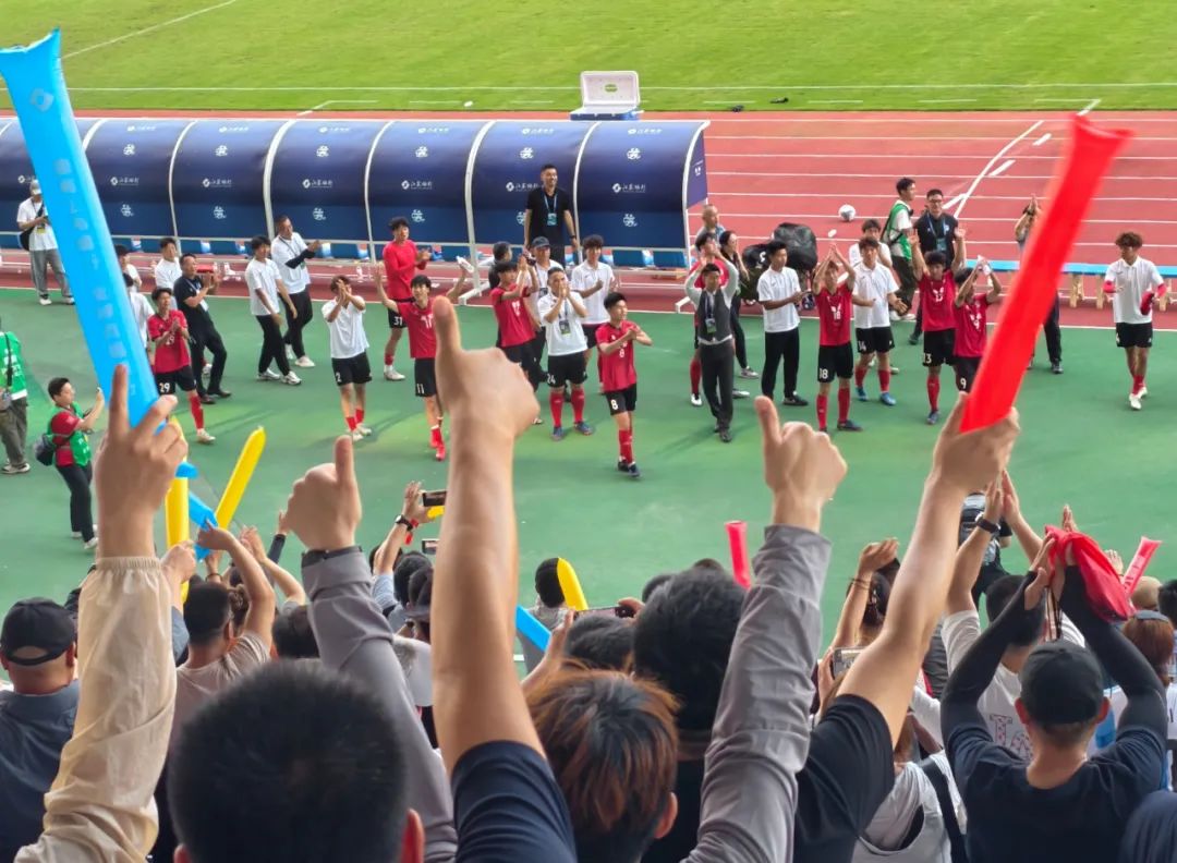 赛后淮安球迷为淮安队员喝彩,纷纷竖起大拇指!曹政 摄