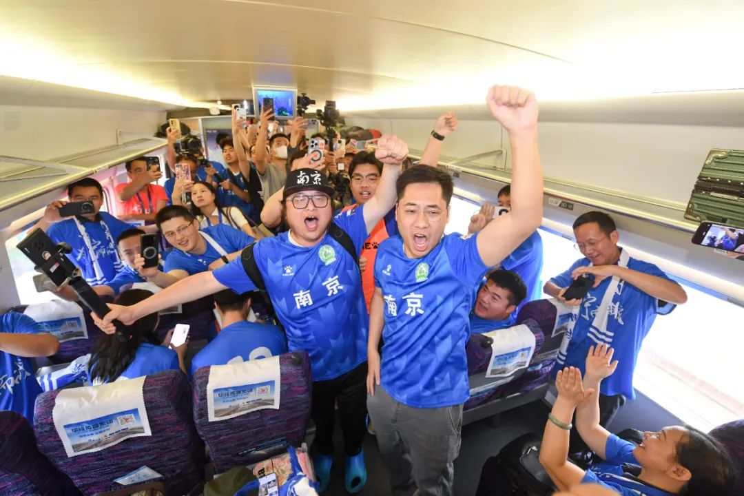 14日启程的长三角首趟“苏超”球迷专列G9253次5号车厢内,氛围满满。万程鹏 摄