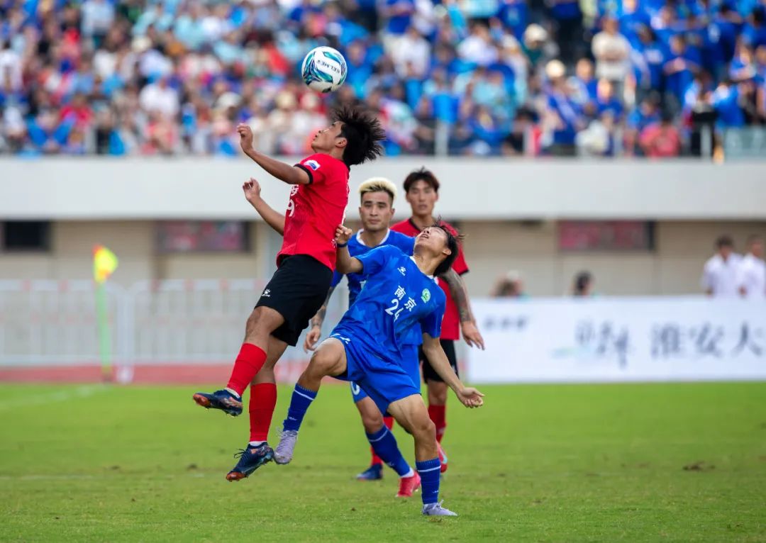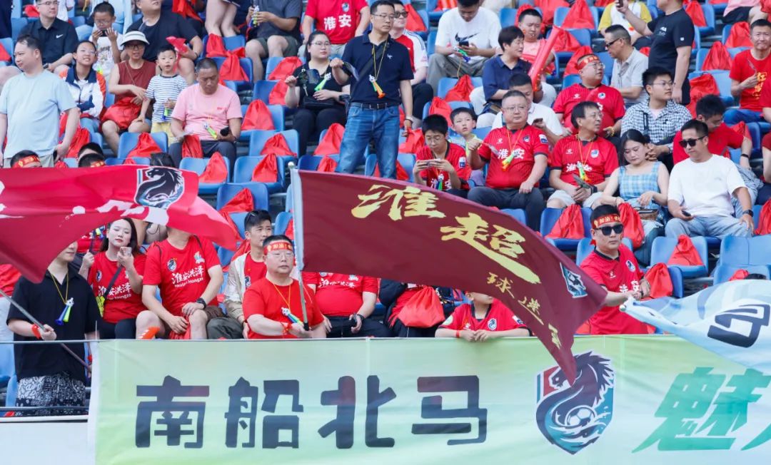 淮安主场热情的球迷为各自球队呐喊助威。赵启瑞 摄