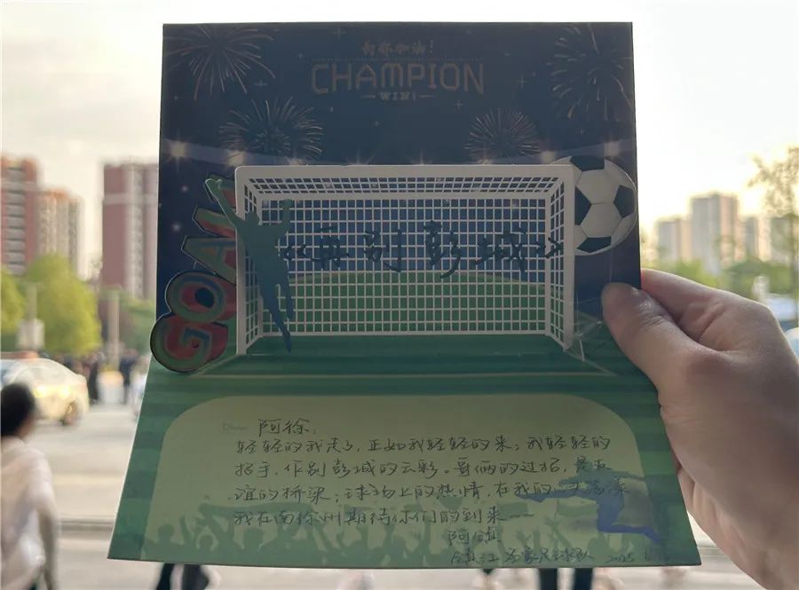 6月15日,徐州队主场对阵镇江队的比赛在徐州市奥体中心打响。赛后,镇江队手写一封感谢信感谢徐州队。万程鹏 摄