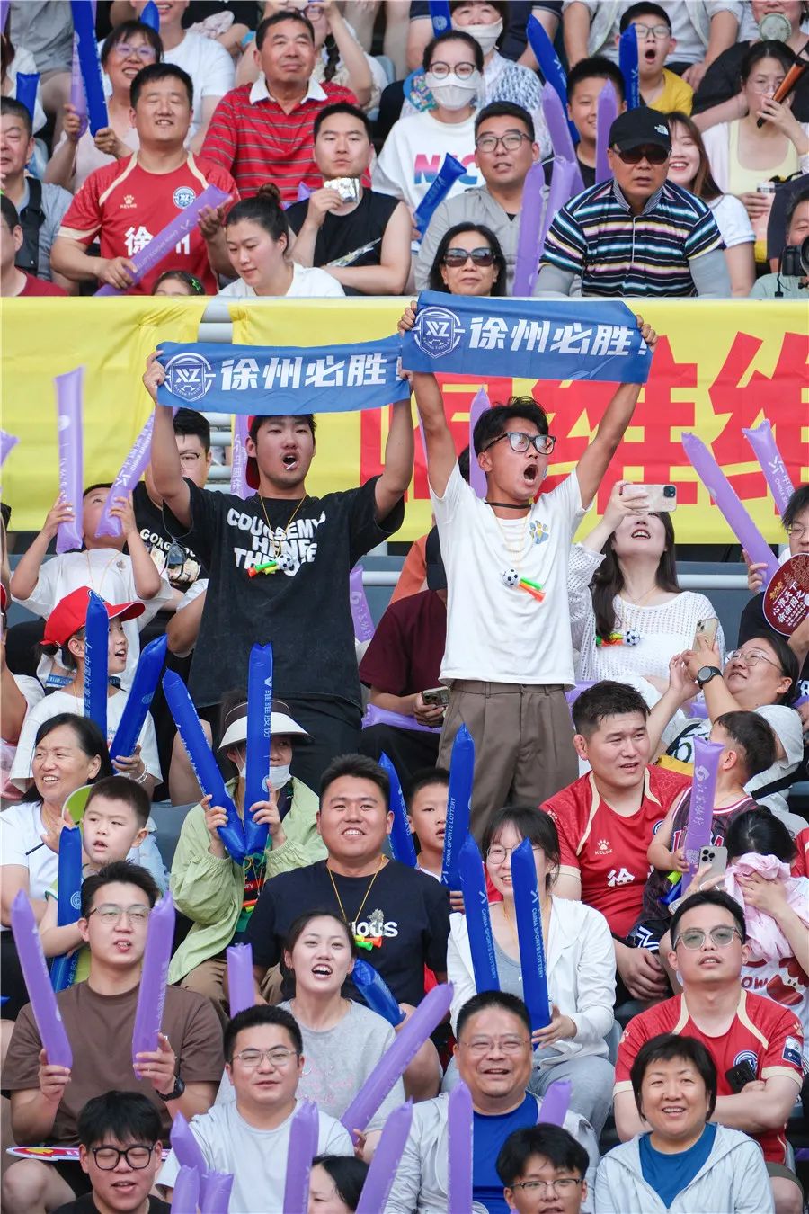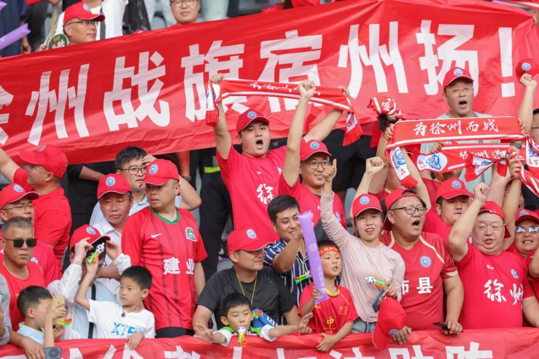 6月15日,徐州队对阵镇江队的比赛中,徐州看台上主场球迷在为徐州加油。谢圣龙 摄