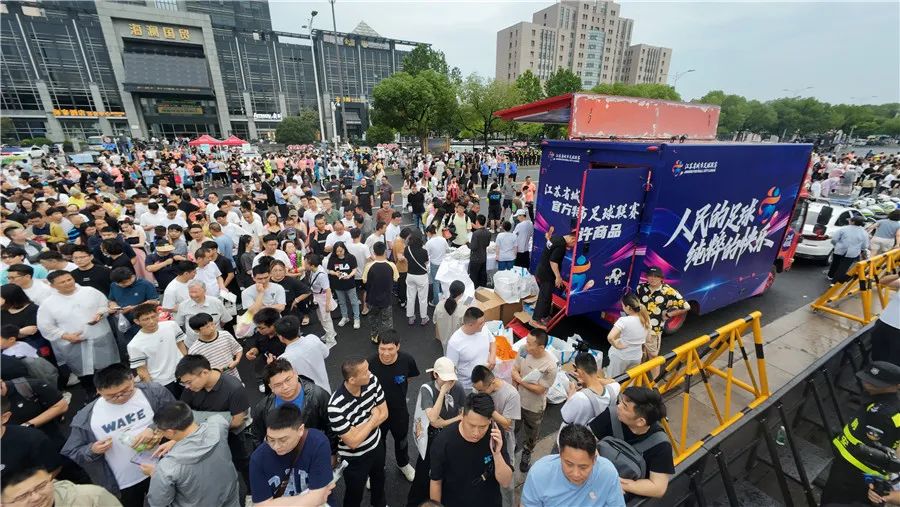 6月15日,有着“苏南德比·笔画保卫战”之称的无锡VS常州苏超第四轮比赛在江阴市体育中心体育场举行。体育馆门口的标语“人民的足球 纯粹的快乐”格外醒目。吴俊 摄