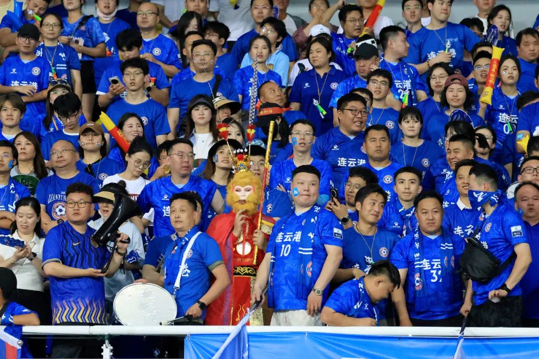 6月15日晚,连云港队主场迎战苏州队。看台上为连云港队加油的球迷。冯宝林 摄