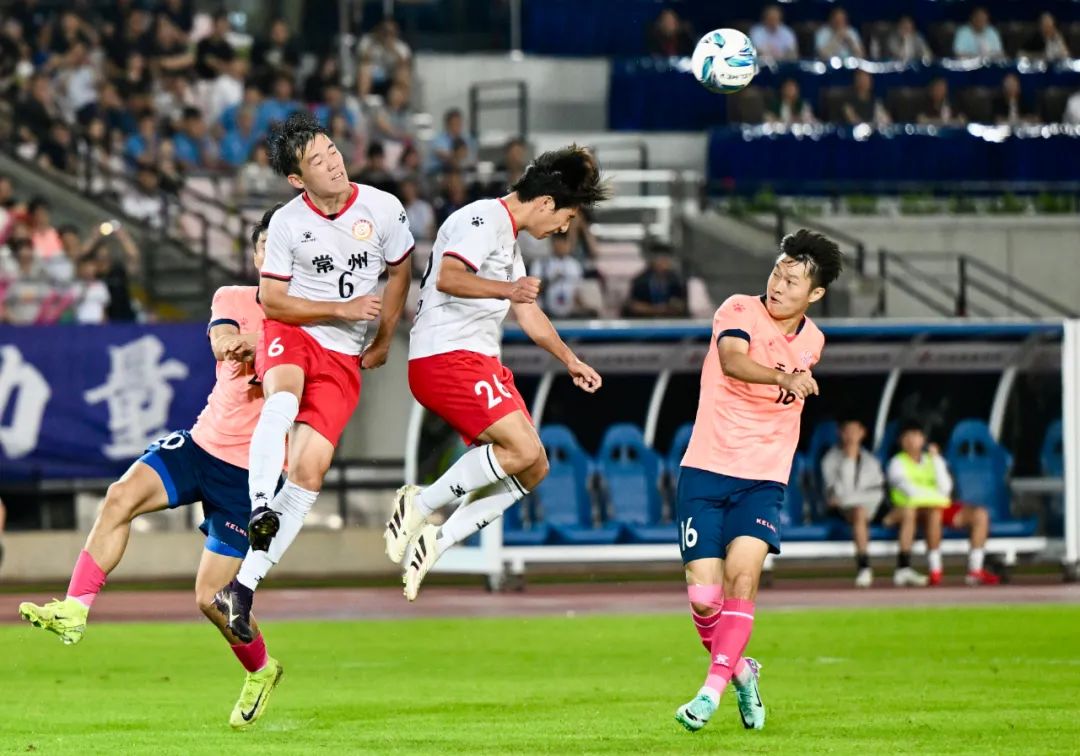 6月15日晚,“苏超”第四轮迎来一场焦点之战。坐镇主场的无锡队发挥出色,以2比0击败常州队,取得2025江苏省城市足球联赛开赛以来的首胜。宗晓东 摄