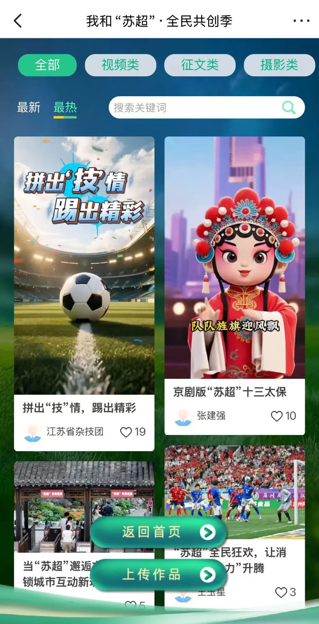 自5月10日“苏超”开赛以来,这片绿茵场不仅见证了汗水与拼搏,更串联起体育、文化与经济的脉动,成为江苏向世界展示活力的窗口。当足球哨声在江苏大地上吹响,一场关于热爱与表达的全民狂欢蓄势待发,正召唤每一个热爱这片土地的你拿起笔、举起镜头,敞开胸怀加入这场创意狂欢!