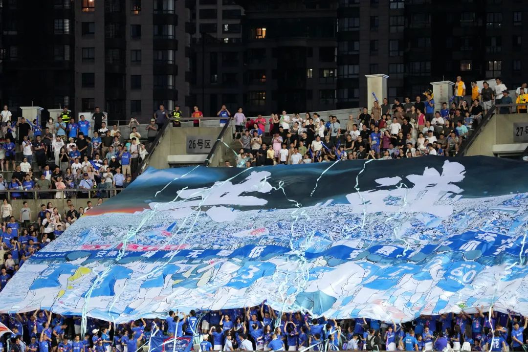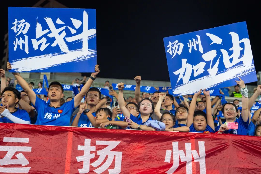 扬州八怪球迷协会展示500平米的TIFO“共进退”为扬州队加油!赵红伟摄