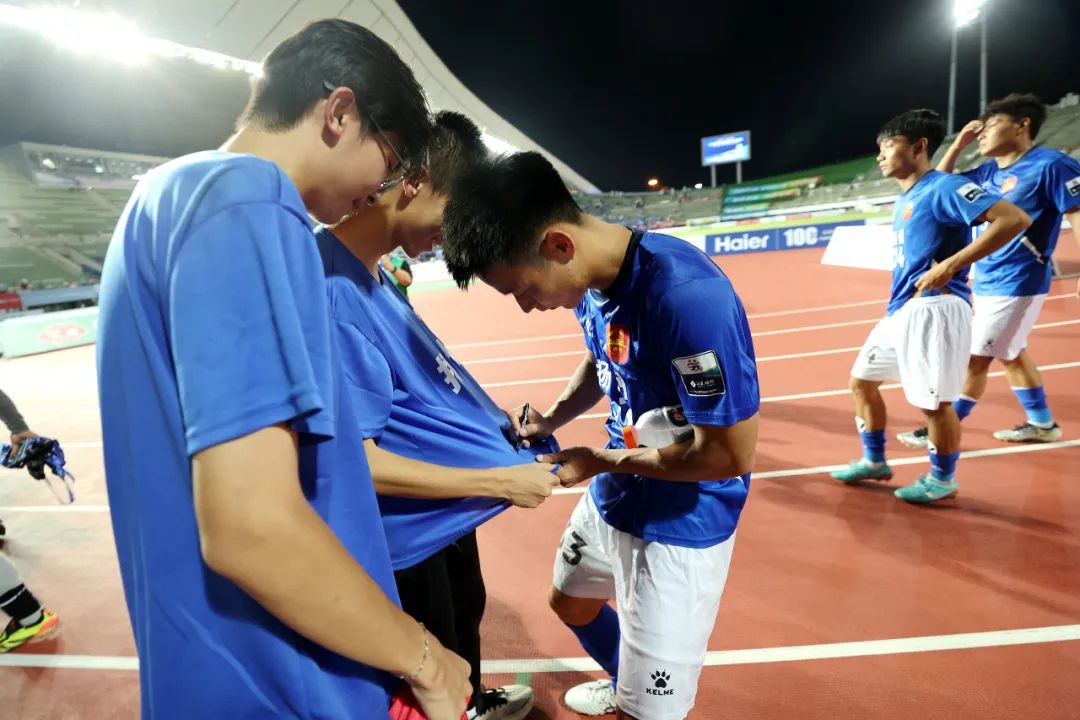 赛后队员与球迷签名 赵红伟摄